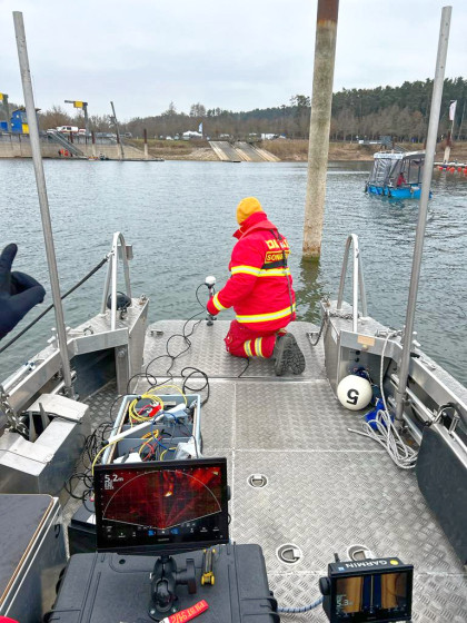 Nach den vielen Sanitätsdiensten der letzten Wochen sind wir wieder mit dem Sonar unterwegs. Bei -2,5 °C in Pleinfeld stellen wir interessierten Wasserrettern und der Berufsfeuerwehr unser Sonarsystem vor und testen zusammen Sonargeräte verschiedener Hersteller.